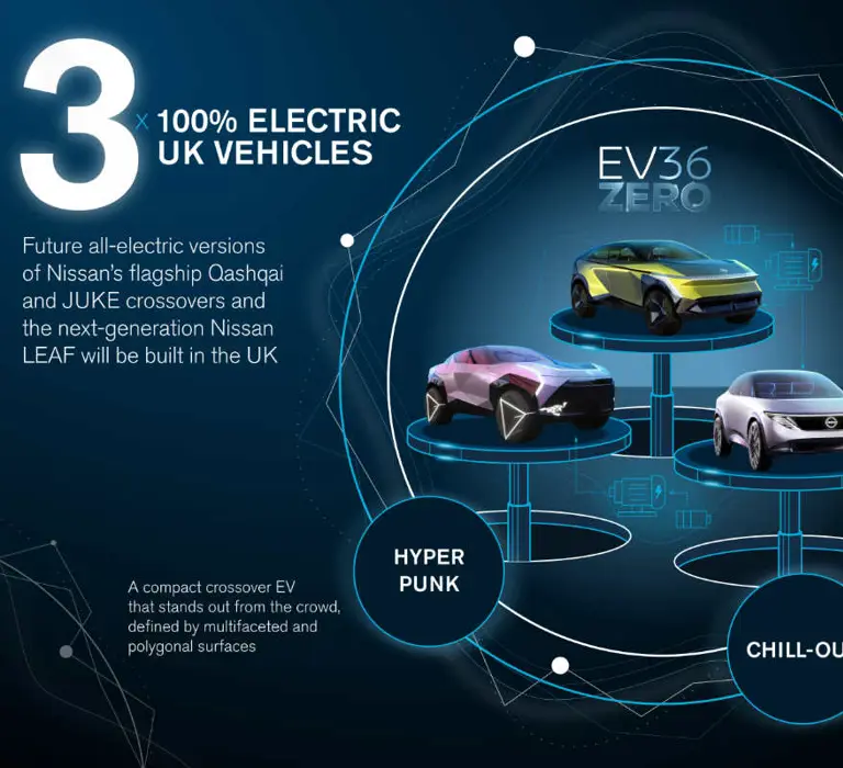 Nissan’s blueprint for future manufacturing, will consist of three electric vehicles (EVs), three gigafactories and up to £3bn investment.